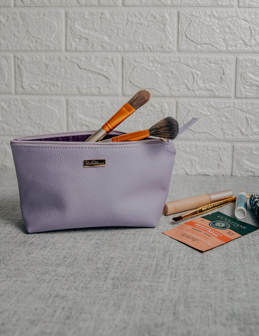 Mini cosmetiquera cuero lila “sé tu mejor compañía”