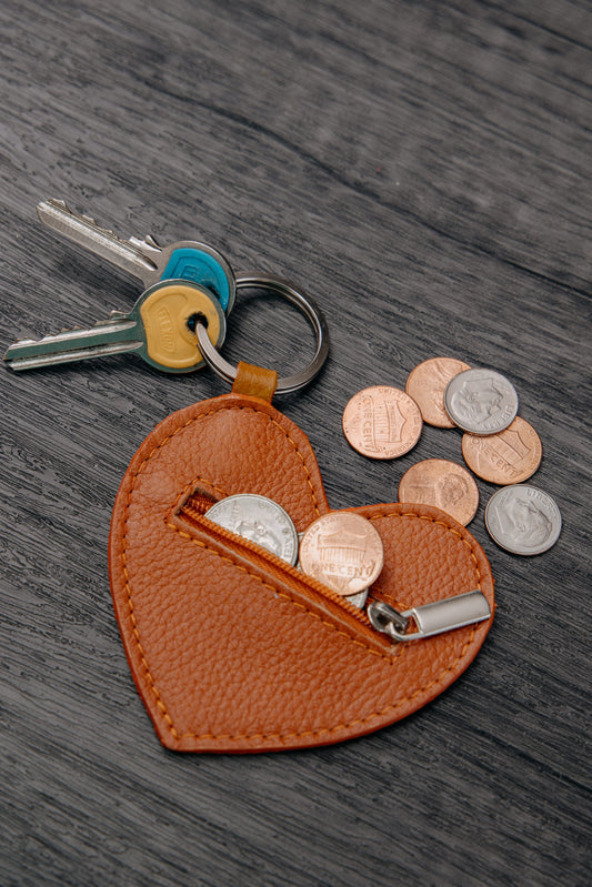 Llavero / monedero corazón cuero rojo