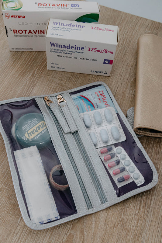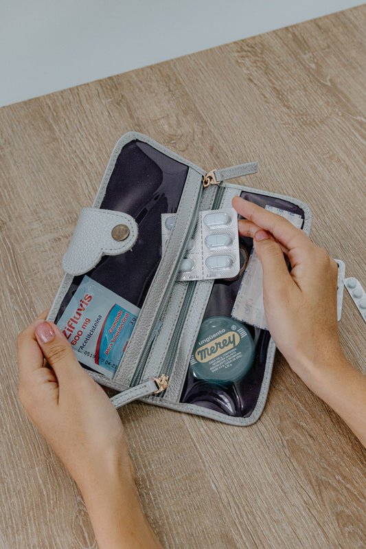Estuche viaje cuero rojo y plástico transparente Love Live Travel