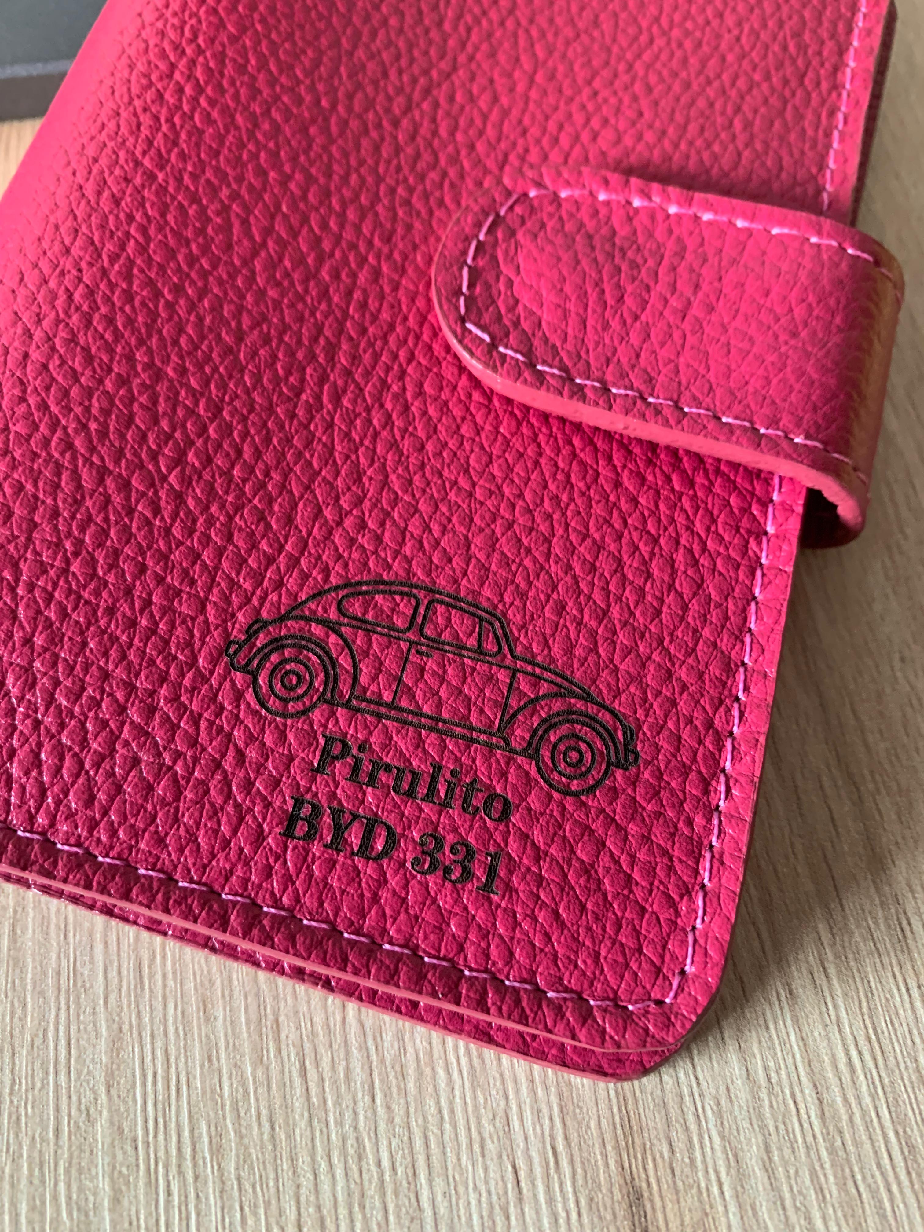 Ata cables maleta cuero rojo con nombre