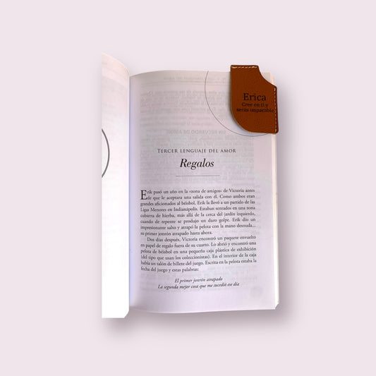Separador de libro cuero café libro y rosa