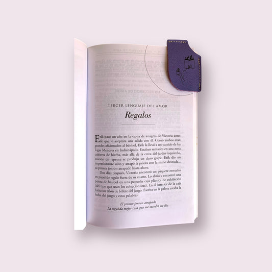 Separador de libro cuero morado libro y café