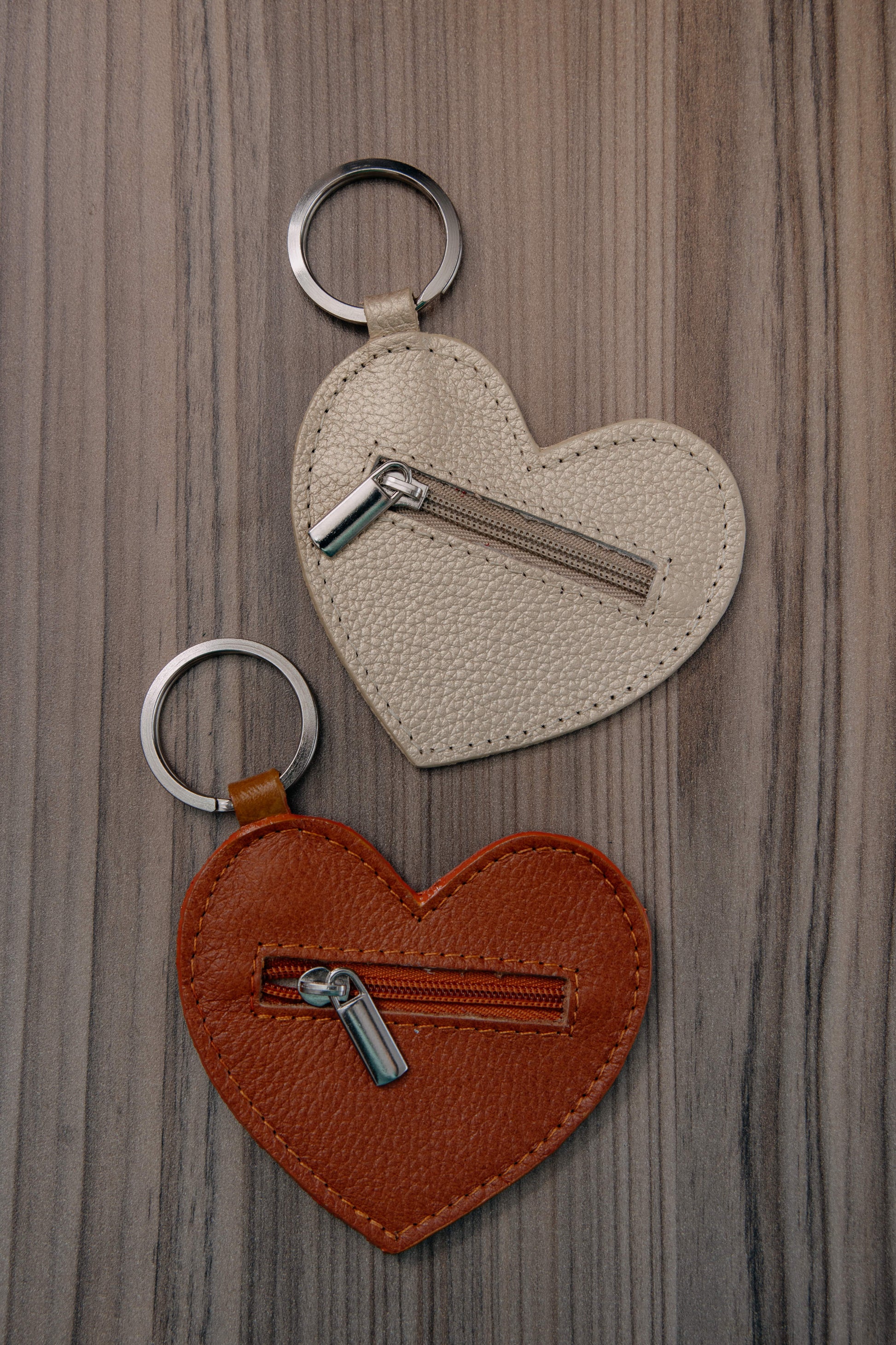 Llavero / monedero corazón en cuero, sin forro. Aro para meter las llaves de forma fácil y segura. Ideal para llevar llaves y monedas/dinero a la mano. Personalizable con nombre, imagen o frase. Gratis hasta 3 ítems/palabras.