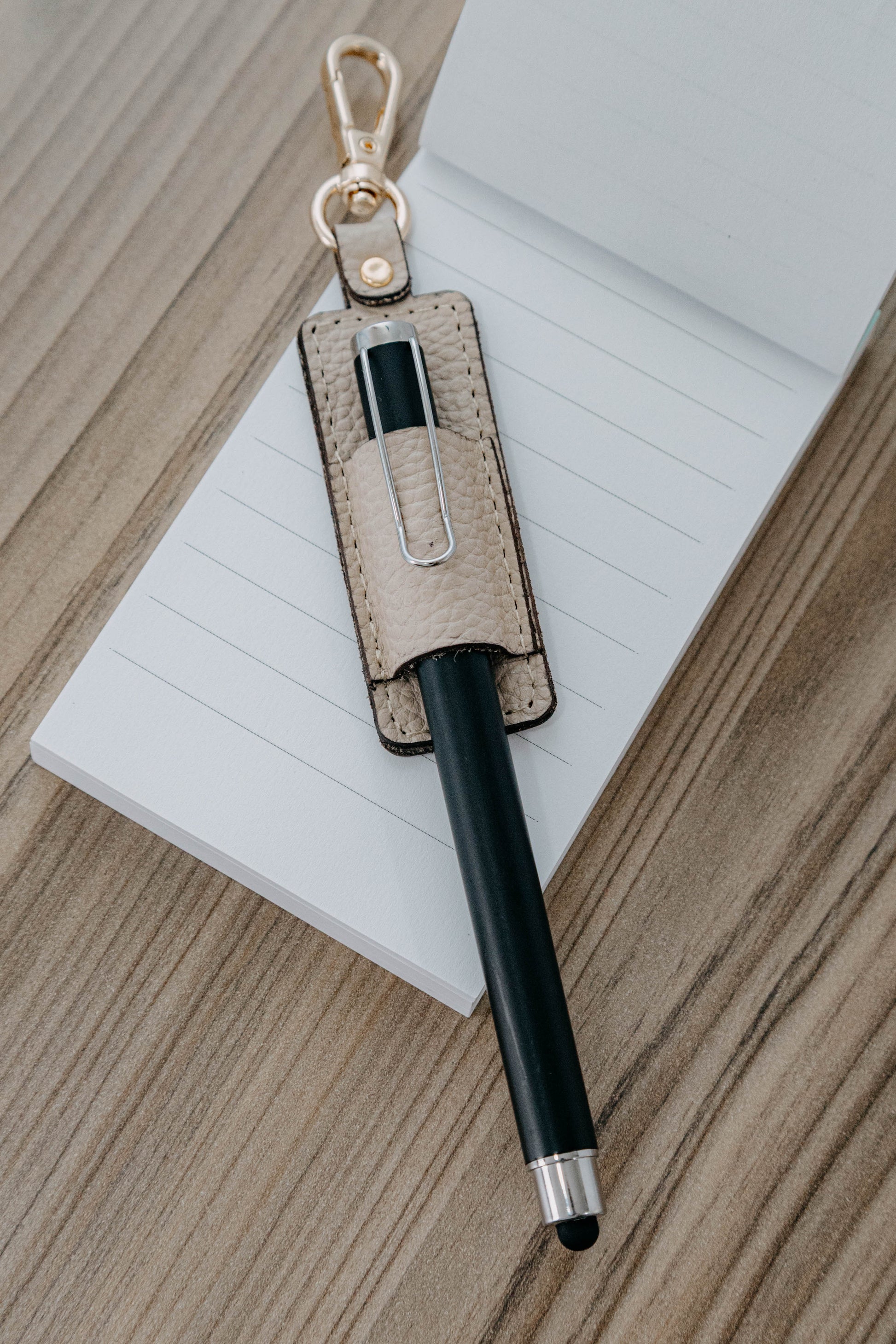 Práctico, elegante y funcional. Nuestro Cuelga Esfero en cuero premium te permite llevar tu bolígrafo siempre a la mano, ideal para bolso, maletín o estuche.