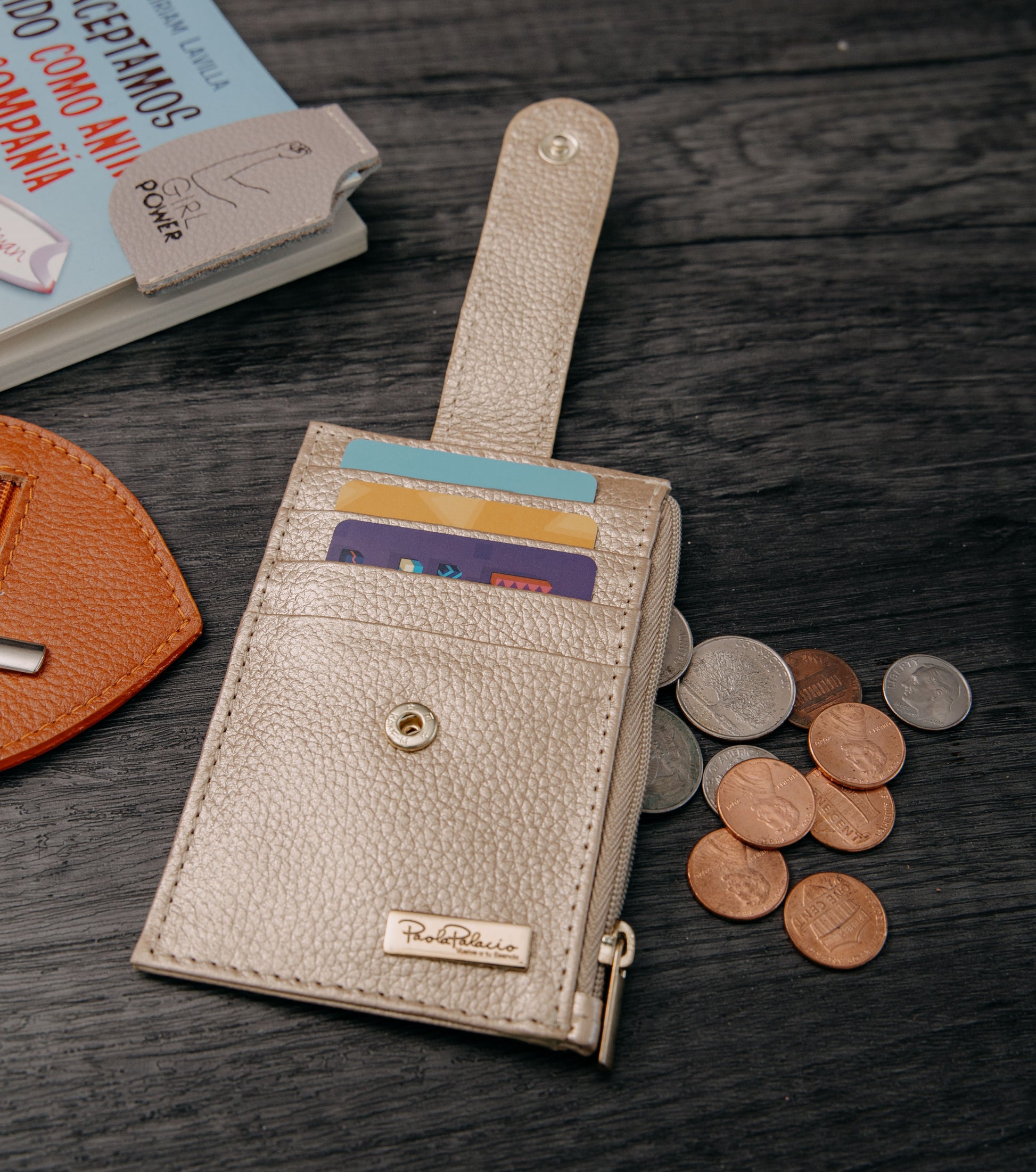 Portadocumentos en cuero con forro y cremallera, ideal para portar hasta 4 documentos de fácil acceso con pasador para mantenerlos seguros. 1 monedero con cremallera de fácil acceso.